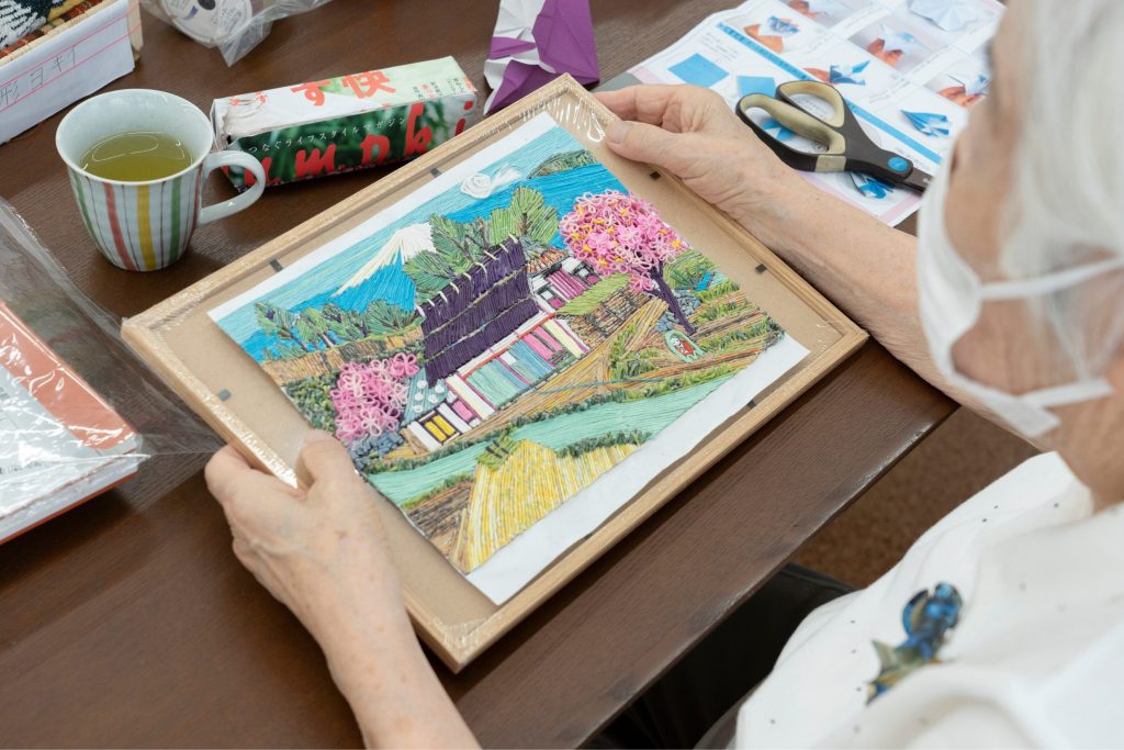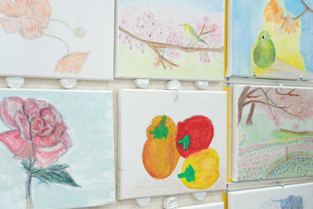 絵画、手芸、習字、工作など手先や頭を使う芸術活動を通して認知症の予防・改善を狙っています。
