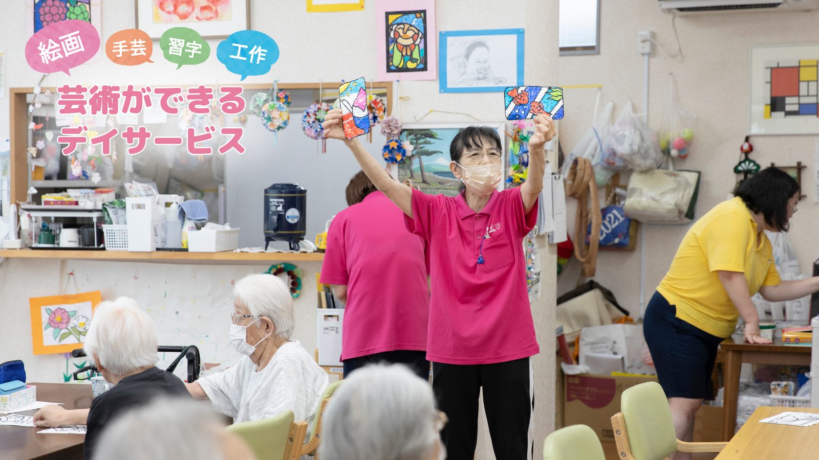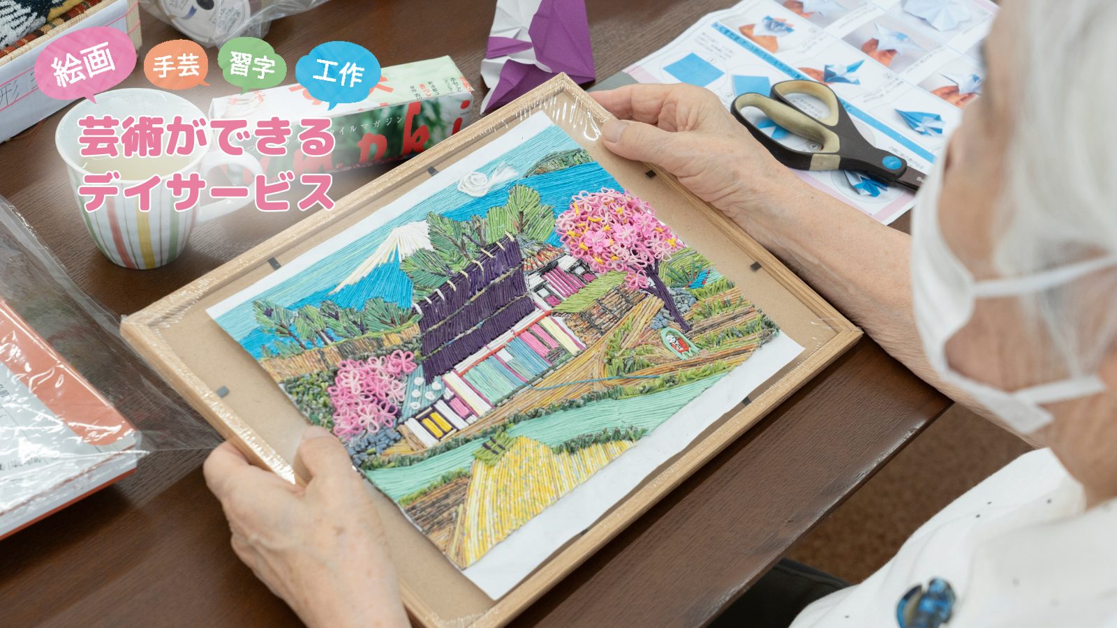 絵画、手芸、習字、工作など手先や頭を使う芸術活動を通して認知症の予防・改善を狙っています。
